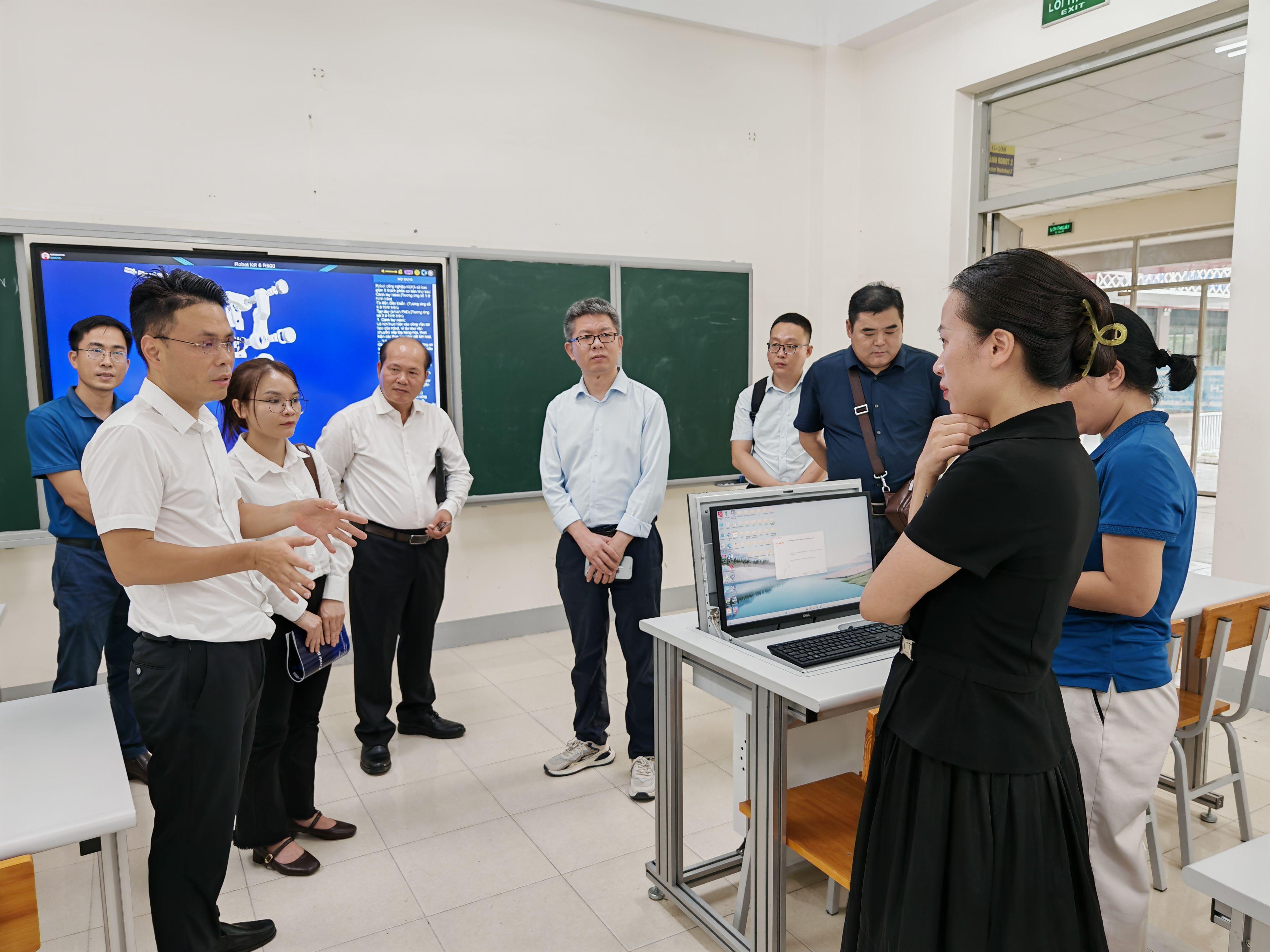 德创团队与河内工业大学、北宁工业大专、北宁李太祖大专,北江山地大专、北江职业大专、北江越韩大专、兴安技术与教育大学等多所北宁省高校展开交流,就实训室共建、学生实习就业等达成初步合作意向。双方同意以“岗课赛证”融通模式为参考,共同开发符合越南制造业需求的课程与实训体系。此举既是对“职教出海”政策的具体实践,也为中越职教合作树立新范式。